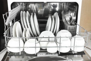 Home»Økonomi og Penge»Sådan finder I den bedste opvaskemaskine til virksomheden»Open dishwasher with clean utensils in it